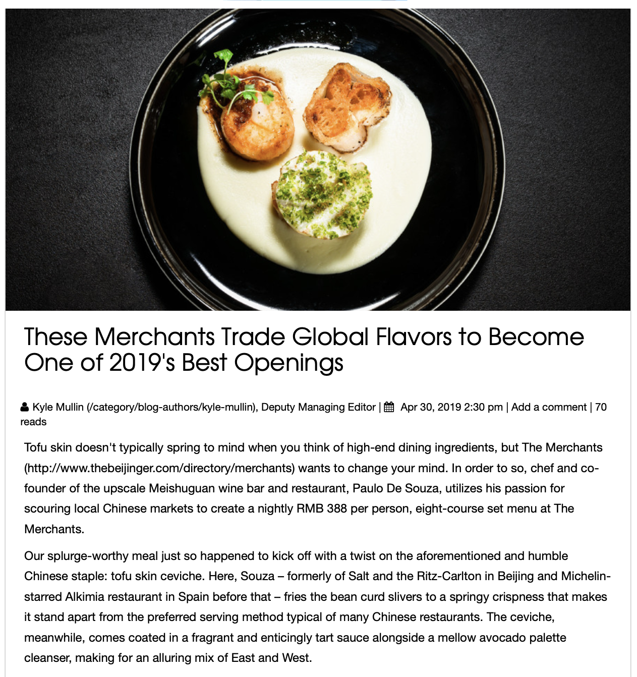 In this Forbes China feature, The Merchants is presented as a pioneer of “third culture cuisine” in China, shaped by local ingredients and a global mindset.